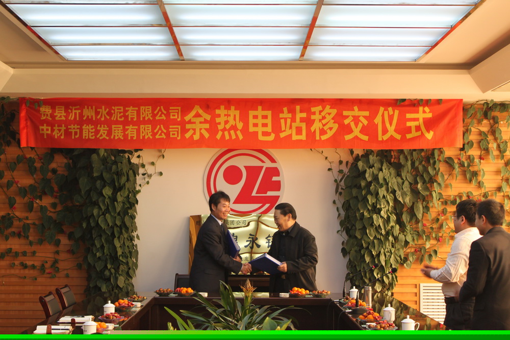 上午9時18分,費縣沂州水泥有限公司5000t/d熟料水泥窯余熱電站移交儀式正式開始。公司總經(jīng)理何新平、副總經(jīng)理葛立武、現(xiàn)場經(jīng)理晏琳灃及沂州集團(tuán)公司黨委書記張懷連、費縣沂州水泥有限公司總經(jīng)理主冠強(qiáng)、副總經(jīng)理徐世杰等共同出席了移交儀式。在移交儀式上何總、葛總與張懷連書記親切交談并共同簽署了余熱電站移交文件。