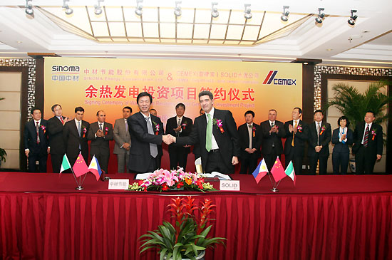 2009年10月,中材節(jié)能開始與CEMEX集團亞洲公司洽談該投資項目。2010年4月,中材節(jié)能與SOLID水泥公司簽訂了余熱發(fā)電項目合作備忘錄。經(jīng)多次談判,最終簽署該協(xié)議。此合作模式也獲得了墨西哥CEMEX集團總部的肯定。2011年9月,中材節(jié)能與CEMEX集團簽署了將本合作模式推廣到CEMEX集團其他水泥廠的意向書。今后,中材節(jié)能與CEMEX集團將在一批余熱發(fā)電項目上繼續(xù)合作。