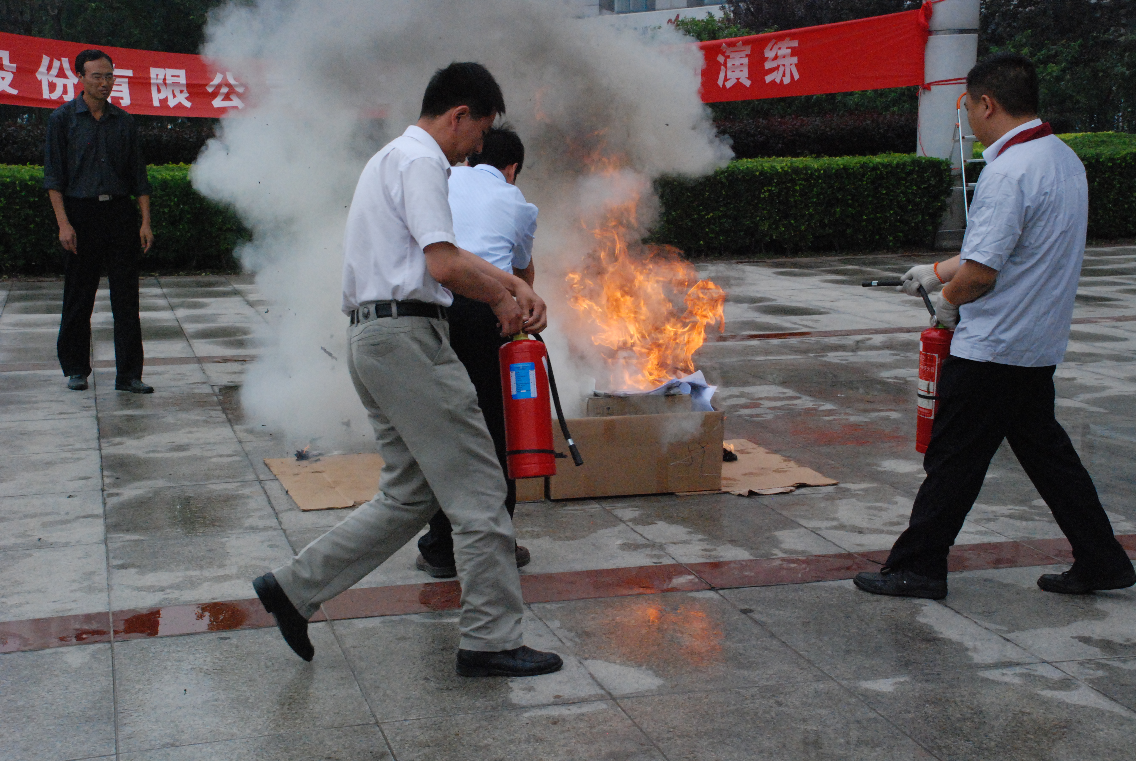 上午10點(diǎn),消防演習(xí)開(kāi)始,各樓層疏散人員立即組織本區(qū)域員工井然有序地按照規(guī)定路線進(jìn)行緊張、快速的撤離,4分鐘內(nèi)完成撤離工作。安全撤離完畢后,滅火組成員現(xiàn)場(chǎng)演示了滅火器操作程序和使用方法,并讓部分員工親自使用滅火器進(jìn)行實(shí)地滅火。