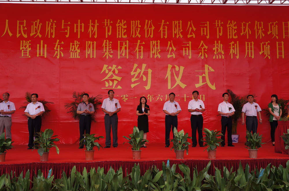 2012年6月27日上午,中材節(jié)能股份有限公司與山東省臨沂市羅莊區(qū)人民政府節(jié)能環(huán)保項(xiàng)目戰(zhàn)略合作暨山東盛陽集團(tuán)有限公司余熱利用簽約儀式在羅莊區(qū)隆重舉行。