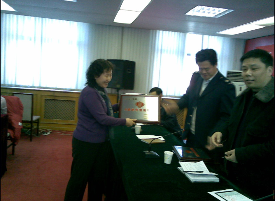 2009年1月14日,天津市北辰區(qū)A級納稅信用等級企業(yè)座談會在北辰區(qū)召開。會上,中材節(jié)能總會計師水偉從國稅局、地稅局領(lǐng)導(dǎo)手中接過了“2008年度A級納稅信用等級”證書。