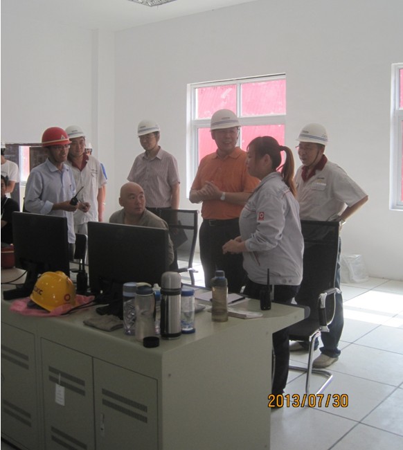 7月30日上午9時(shí),夏日炎炎驕陽似火,總裁胡也明來到中聯(lián)美景水泥有限公司4000t/d水泥熟料生產(chǎn)線配套余熱發(fā)電項(xiàng)目建設(shè)工地,深入到循環(huán)水、窯頭鍋爐、窯尾鍋爐及汽輪機(jī)房施工區(qū)域認(rèn)真查看了現(xiàn)場施工情況,并對現(xiàn)場中存在的安全問題進(jìn)行了指正。在汽機(jī)控制室,胡總仔細(xì)詢問了電站操作人員的日常工作、學(xué)習(xí)情況,并向施工、調(diào)試人員了解設(shè)備安裝和系統(tǒng)調(diào)試的進(jìn)展。