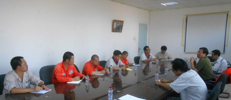 胡也明抵達(dá)沙特后,第一時間趕到沙特YCC項目部,在余熱發(fā)電事業(yè)部副總經(jīng)理王品的陪同下了解現(xiàn)場施工進(jìn)度、安全管理和員工的生活狀況。在對施工現(xiàn)場安全檢查過程中,胡也明向工人們詢問了空冷島的安裝過程,并對安全防護(hù)措施做了詳細(xì)檢查。在項目部專題會上,胡也明指出,現(xiàn)場要把安全放在第一位,要加大現(xiàn)場的安全監(jiān)管力度,杜絕工人的違章違規(guī)行為,對發(fā)現(xiàn)的安全隱患要立即整改。期間,胡也明還參加了由YCC業(yè)主和分包方共同參加的項目協(xié)調(diào)會并講話。