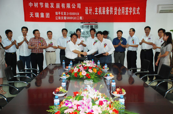 9月4日,中材節(jié)能發(fā)展有限公司與河南天瑞集團(tuán)水泥公司在天津簽訂了平頂山瑞平石龍水泥公司(2×5000t/d)和遼陽天瑞水泥公司二線(5000t/d)配套的余熱發(fā)電工程的設(shè)計和主機(jī)裝備供貨合同。